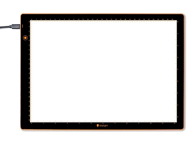 Die Wafer Leuchtpads sind mit hochwertigen LEDs ausgestattet und sorgen für eine gleichmässige, randlose Ausleuchtung Ihrer Projekte. Dimmen Sie das Licht passend zum Papiergewicht und der Stoffstärke und nutzen Sie die praktische Linealführung mit Zoll- und Zentimeterangaben an den Seiten des Abpausebereichs für höchste Präzision. Das helle, schlanke und leichte Daylight Wafer Leuchtpad ist Ihr unverzichtbares Werkzeug für Pausarbeiten mit Papier und Stoffen.